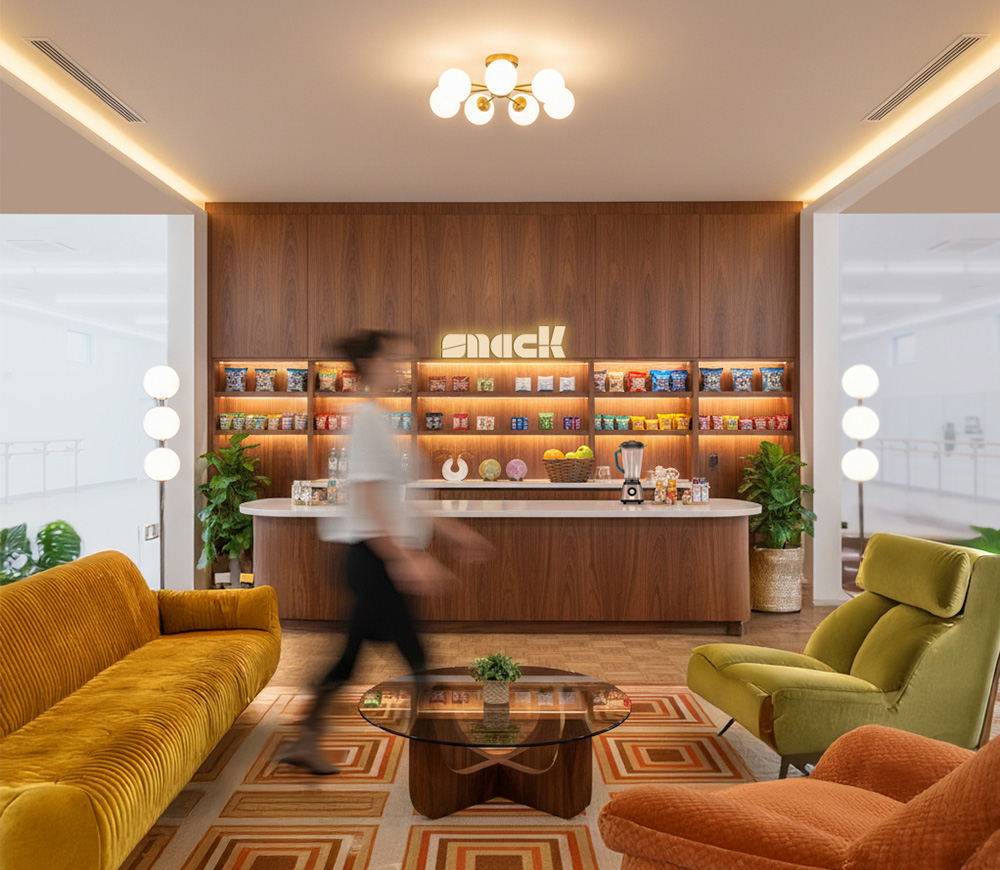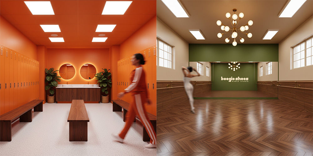 Design d’Espace : Direction artistique de la façade, de l’accueil, du coffee shop, de la salle de danse et des vestiaires.